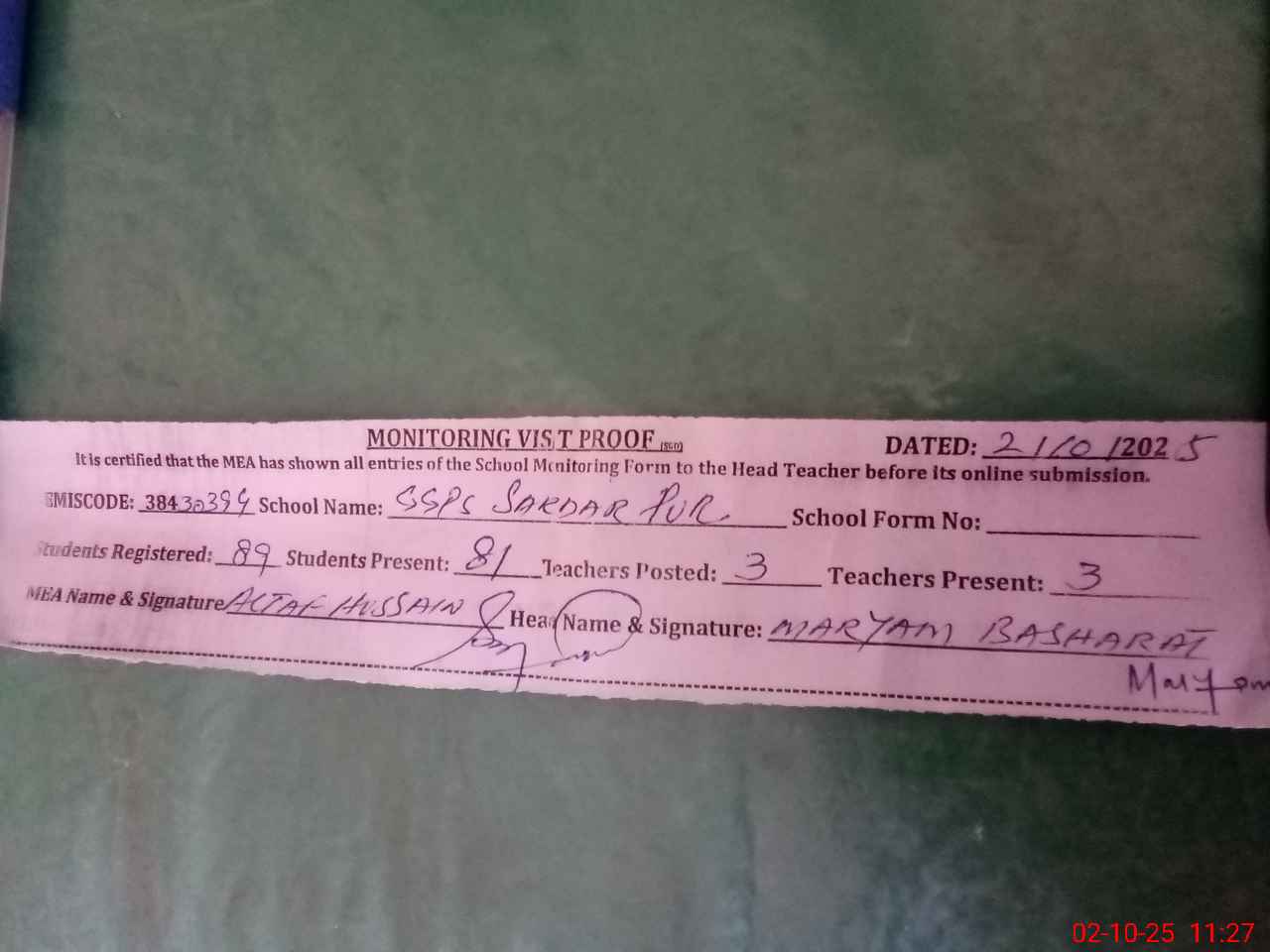| EMIS Code: 38430394 | Name of School: GGPS SARDAR PUR | |||