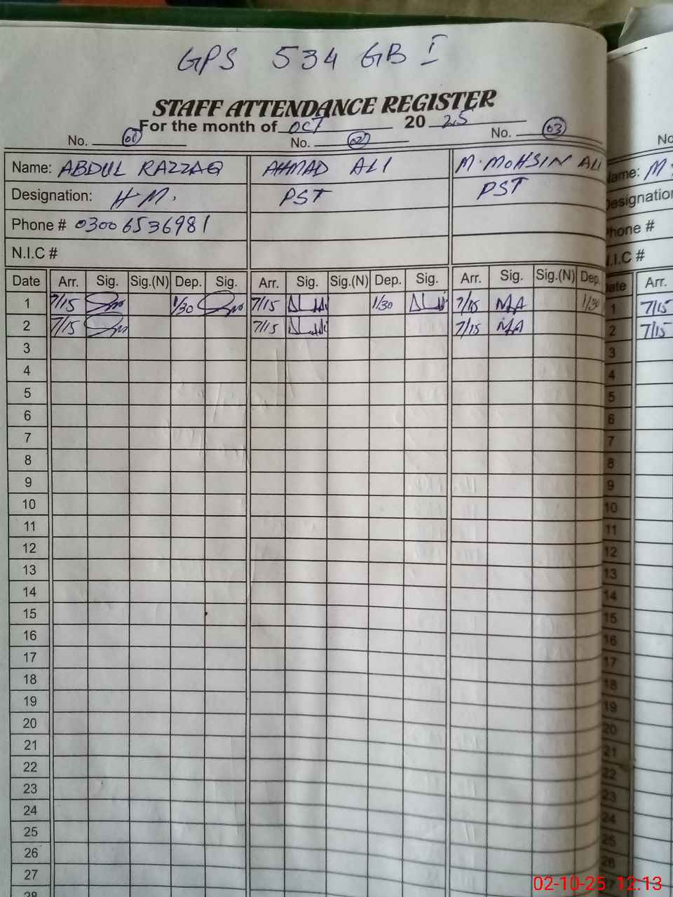 | Name: AB**** RA**** Designation: (School Headmaster's/Headmistress's) PST Phone/Cell Number: 03**** |