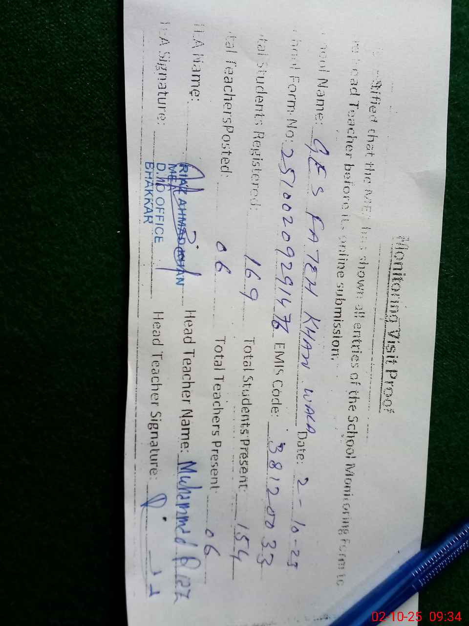 | EMIS Code: 38120033 | Name of School: GES FATEH KHAN WALA | |||