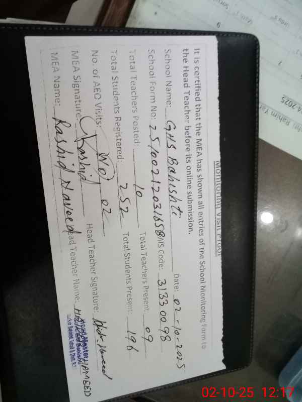 | EMIS Code: 31330098 | Name of School: GHS BAHISHTI | |||