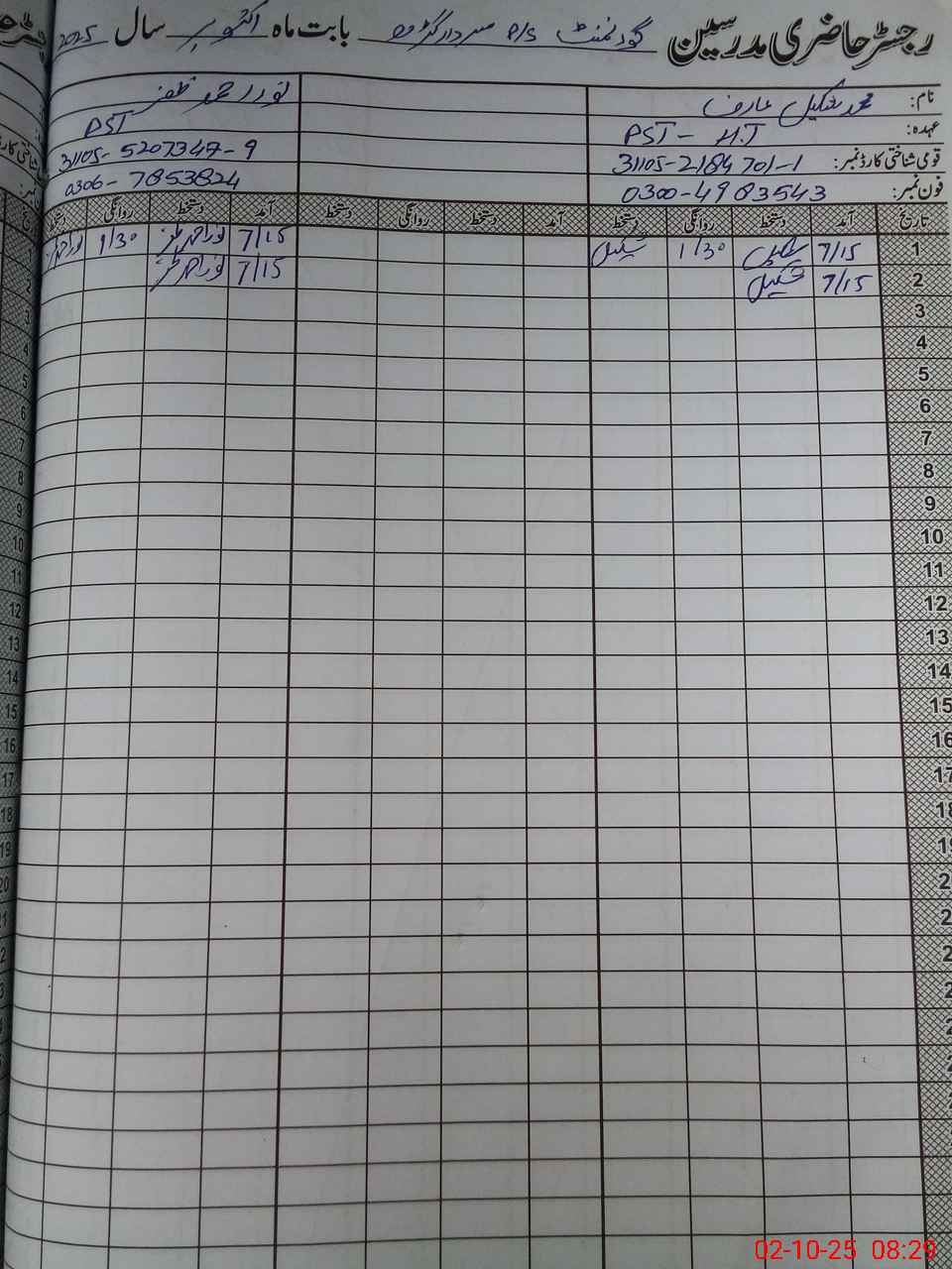 | Name: MU**** Sh**** Designation: (School Headmaster's/Headmistress's) PST Phone/Cell Number: 03**** |