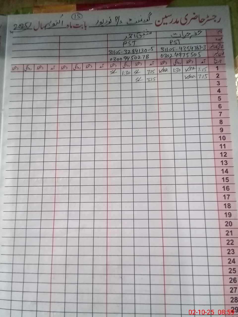 | CNIC | Full Name | Designation | R/C | Absence During Last Calender Month |