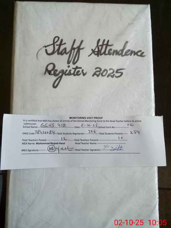 | EMIS Code: 38410084 | Name of School: GGHS CHAK NO.4 SB | |||