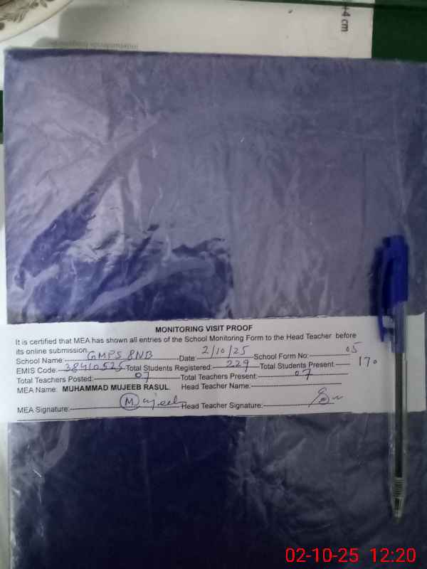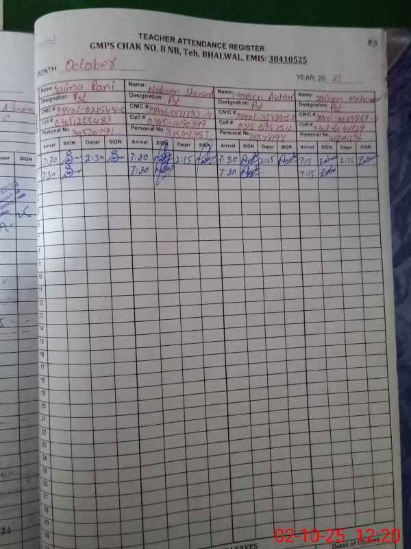 | EMIS Code: 38410525 | Name of School: GMPS CHAK NO.8 NB BHALWAL CITY | |||