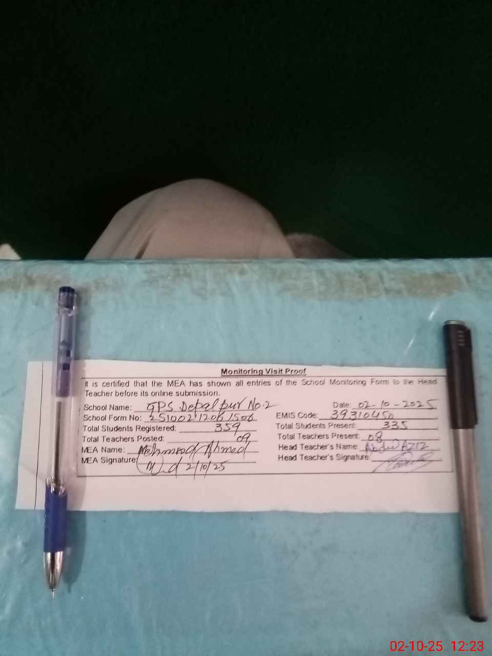 | EMIS Code: 39310450 | Name of School: GPS NO.2 DEPALPUR | |||