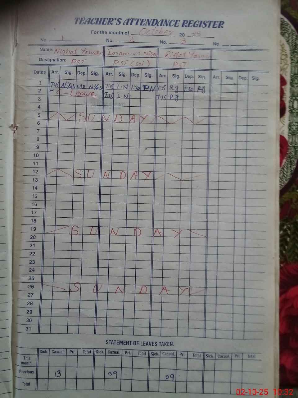 | 37**** | Si**** Ha**** | PST | Regular | 13 | 0 | 1 | 0 | 0 | 0 | 0 | 12 | 1 | Absent (Un-Authorized) |
