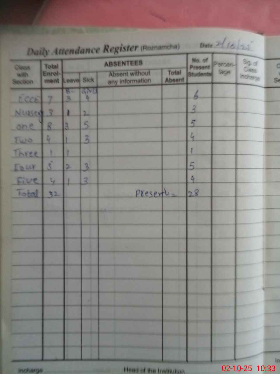 | Total Students Present | 6 | 0 | 3 | 5 | 4 | 1 | 5 | 4 | 28 | |||||||