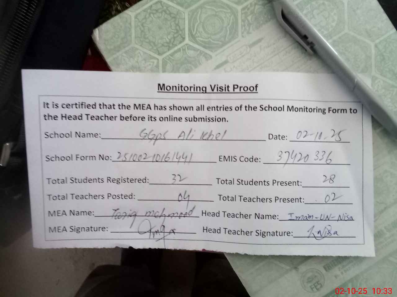 | EMIS Code: 37420336 | Name of School: GGPS ALI KHEL PO KOT QAZI | |||