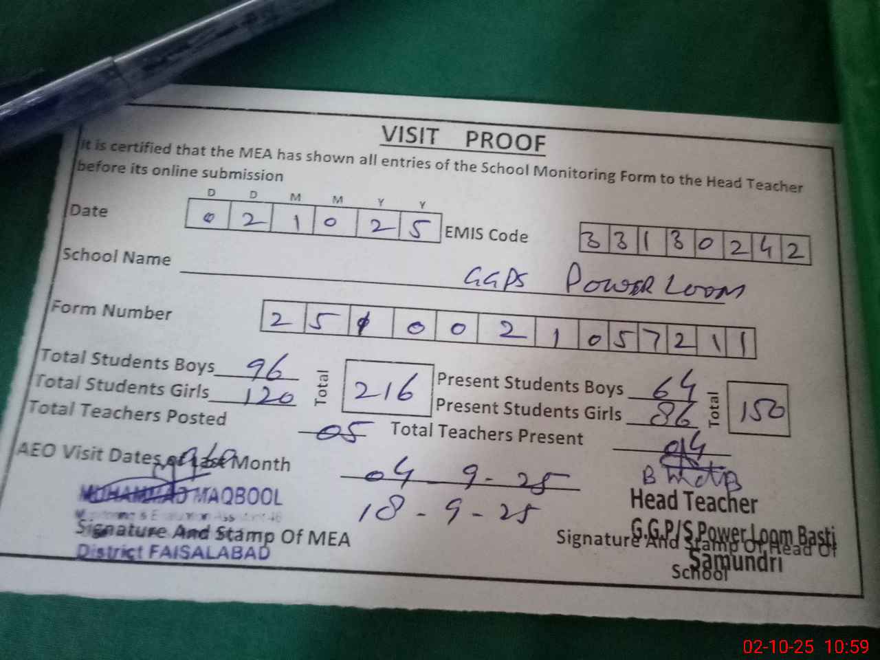| EMIS Code: 33130242 | Name of School: GGPS POWER LOOM BASTI SAMUNDRI | |||