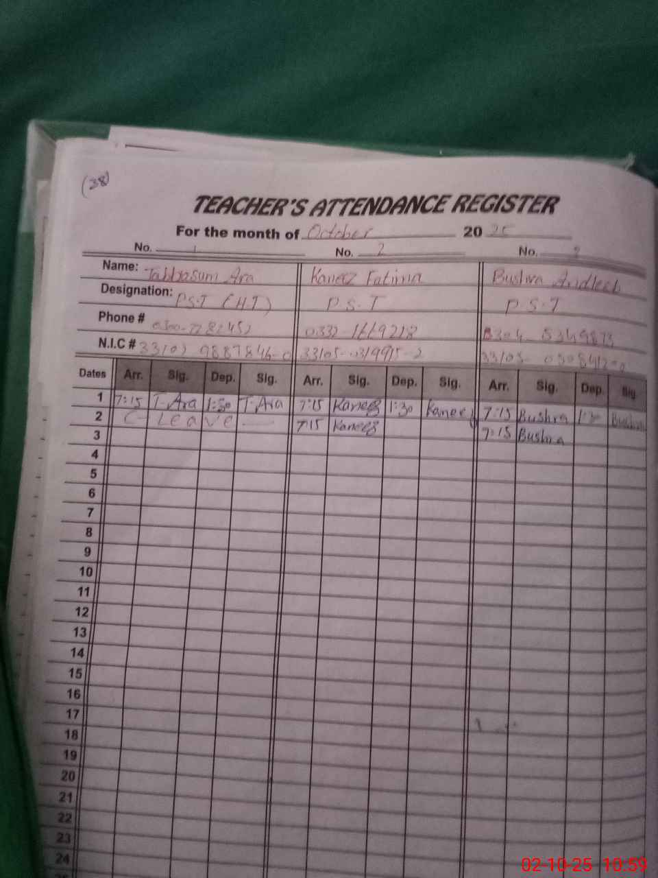 | Name: Ta**** Ar**** Designation: (School Headmaster's/Headmistress's) PST Phone/Cell Number: 03**** |