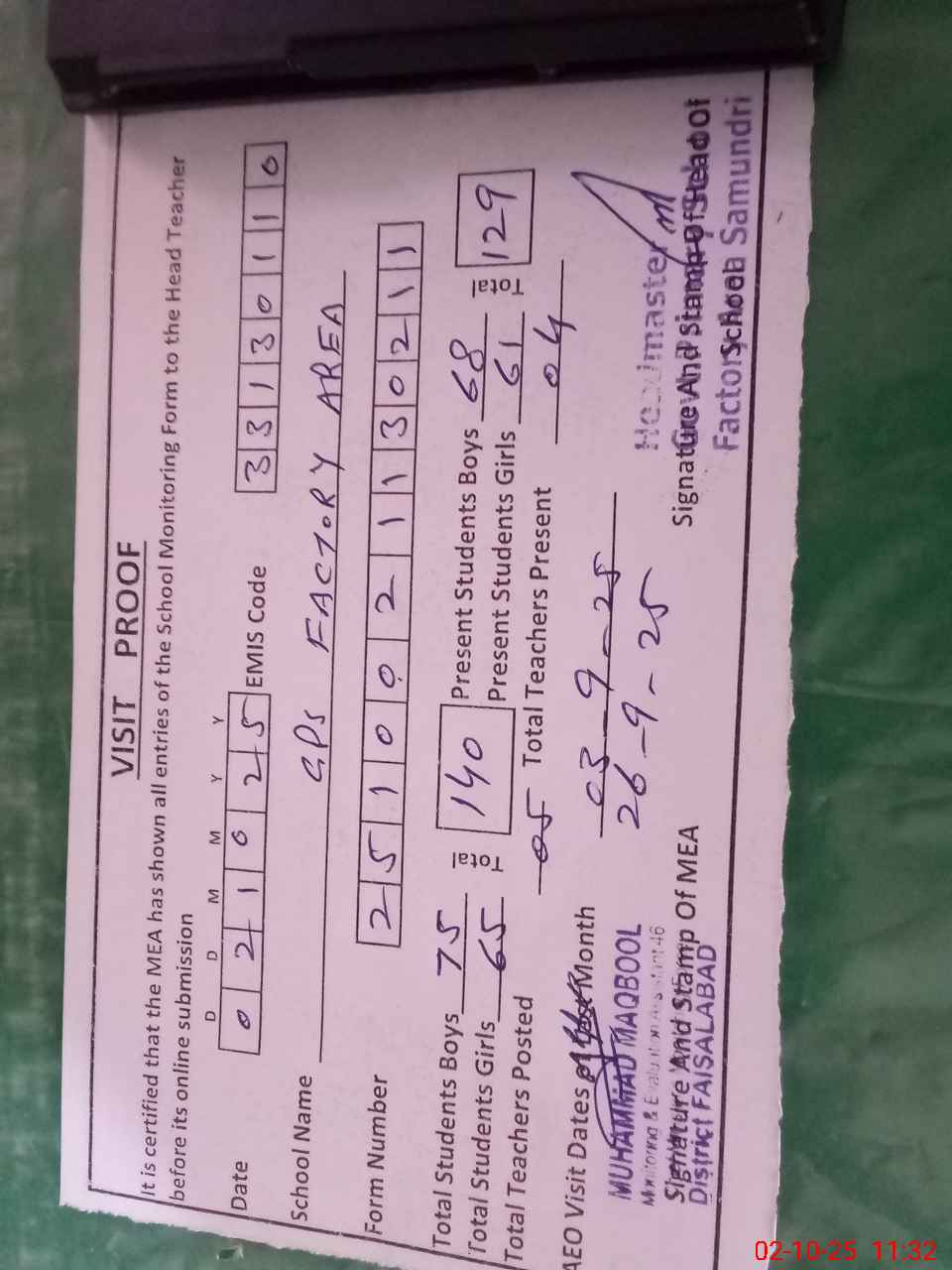 | EMIS Code: 33130110 | Name of School: GPS FACTIRY AREA | |||