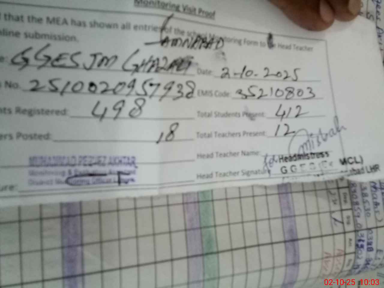 | EMIS Code: 35210803 | Name of School: GGES JUNIOR MODEL SAMANABAD GHAZALI ROAD (EX-MCL) | |||