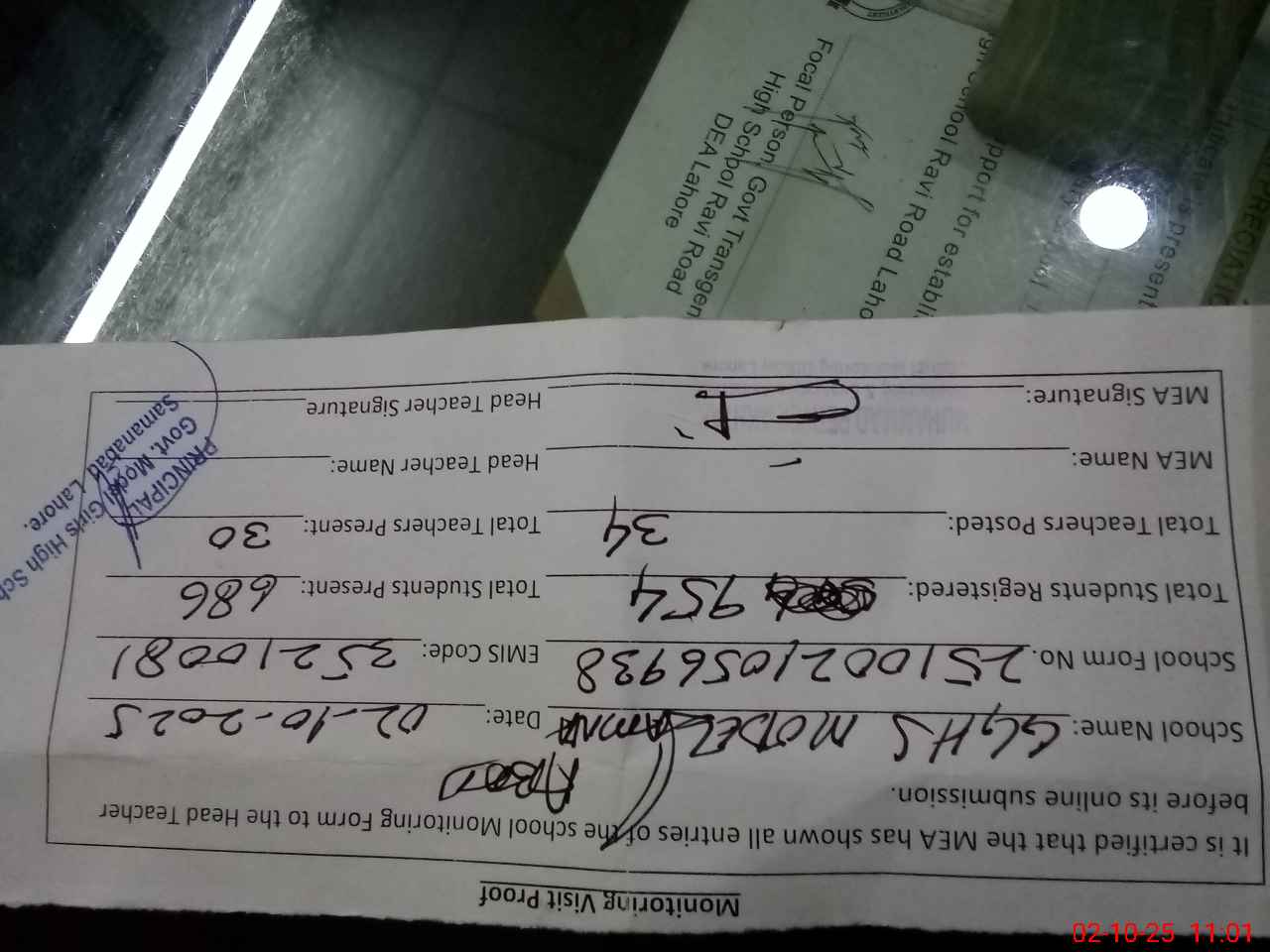 | Certified that this School was Inspected by the Undersigned MEA/DMO Today and the Information Stated Above is as Per Record. | |||||