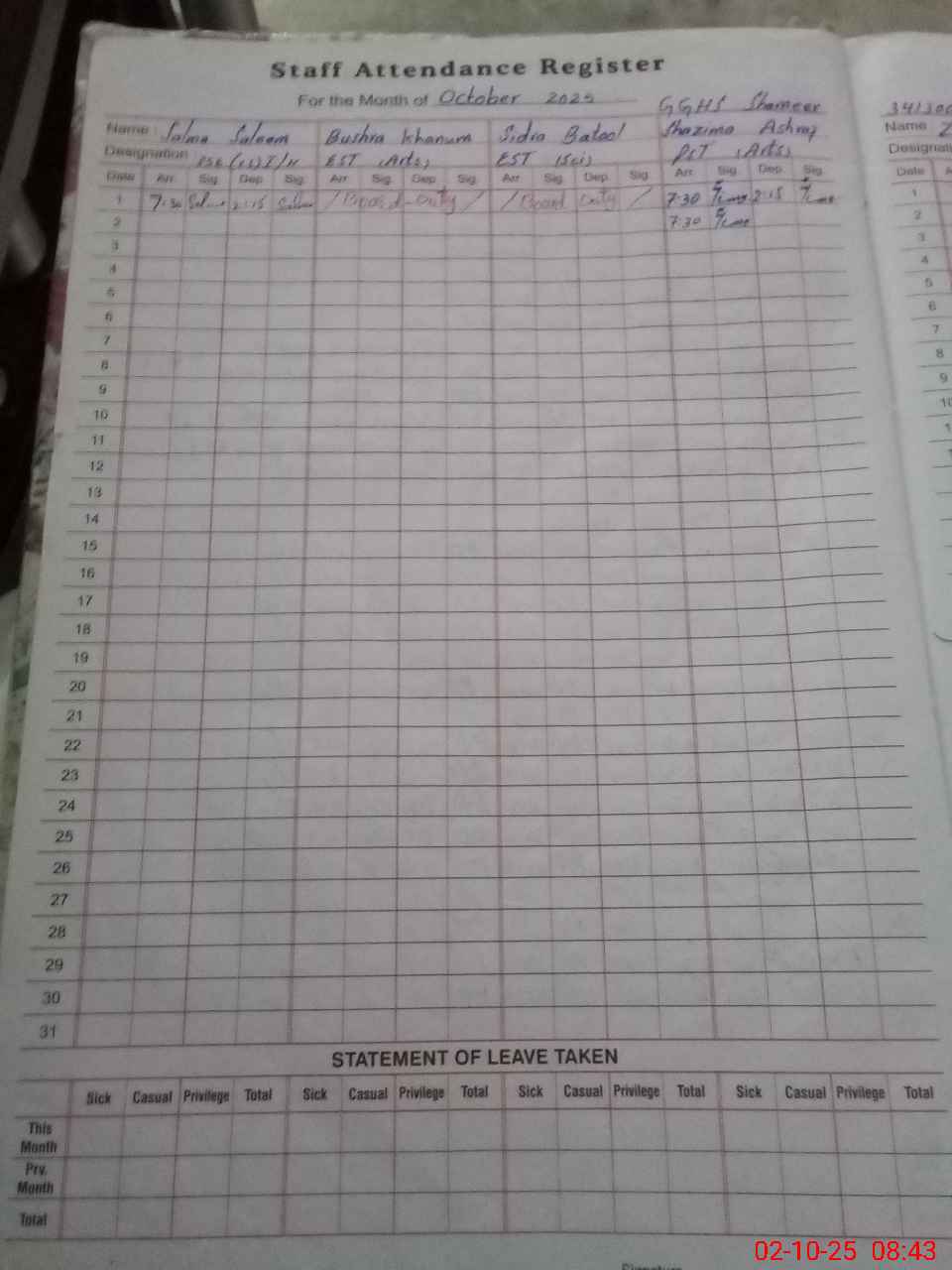 | 34**** | Bu**** Kh**** | EST | Regular | 0 | 0 | 0 | 0 | 0 | 0 | 0 | 0 | 0 | Exam Duty |