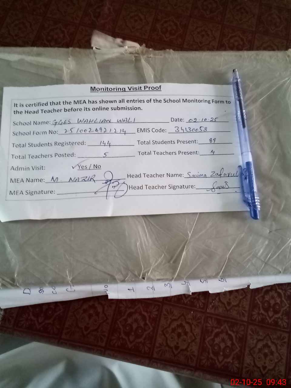 | EMIS Code: 34130058 | Name of School: GGES WALIAN WALI | |||