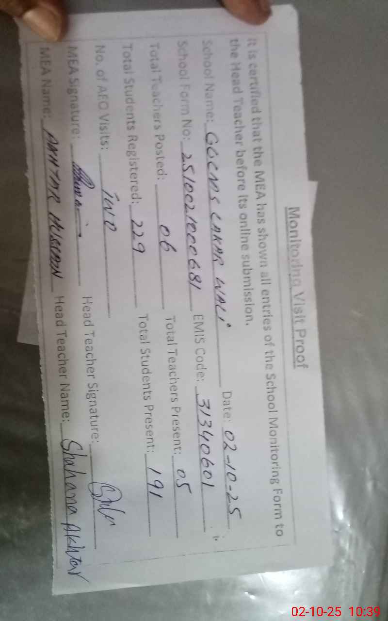 | EMIS Code: 31340601 | Name of School: GGCMS LAKAR WALI | |||