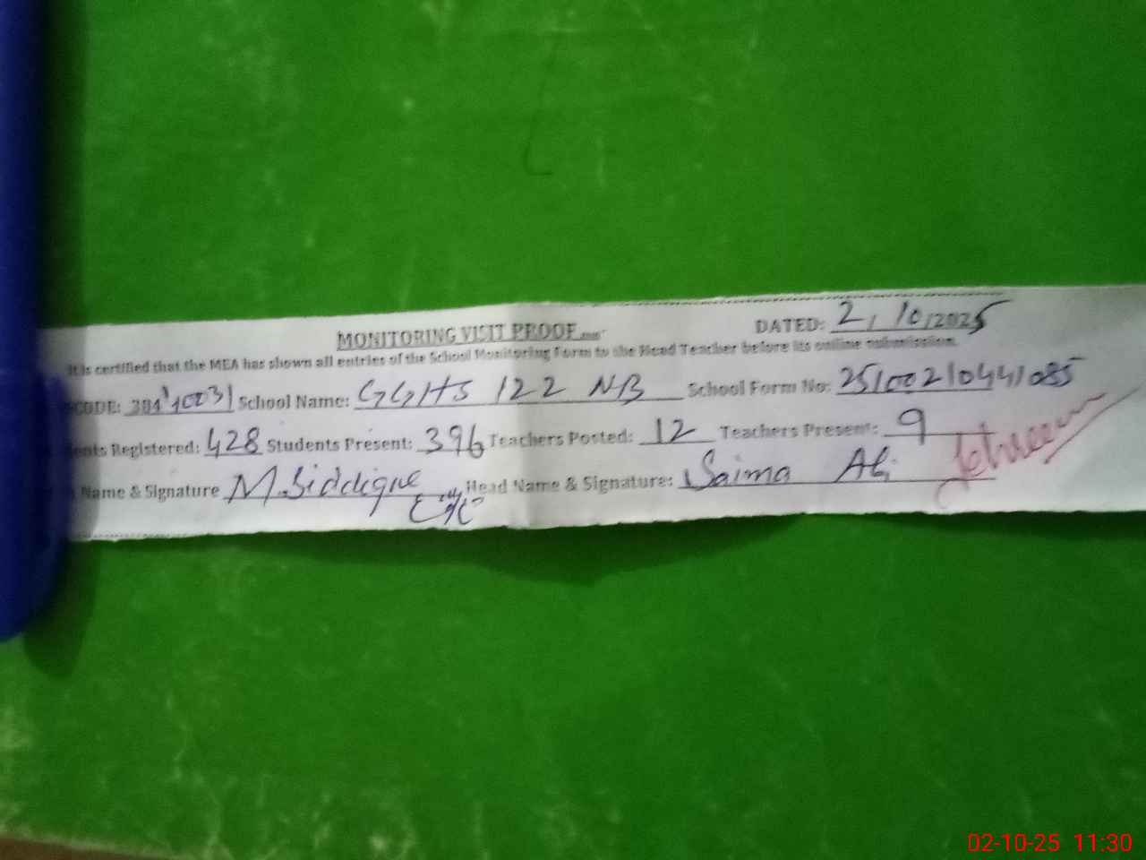 | Attendance Register | Head Teacher | MEA with School | Visit Proof |