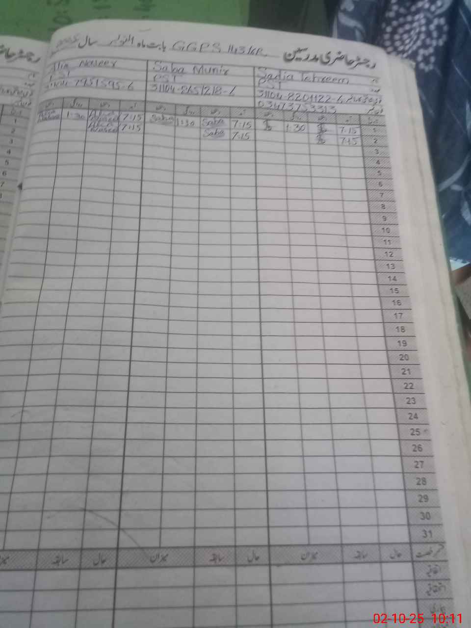 | Name: SA**** TA**** Designation: (School Headmaster's/Headmistress's) PST Phone/Cell Number: 03**** |