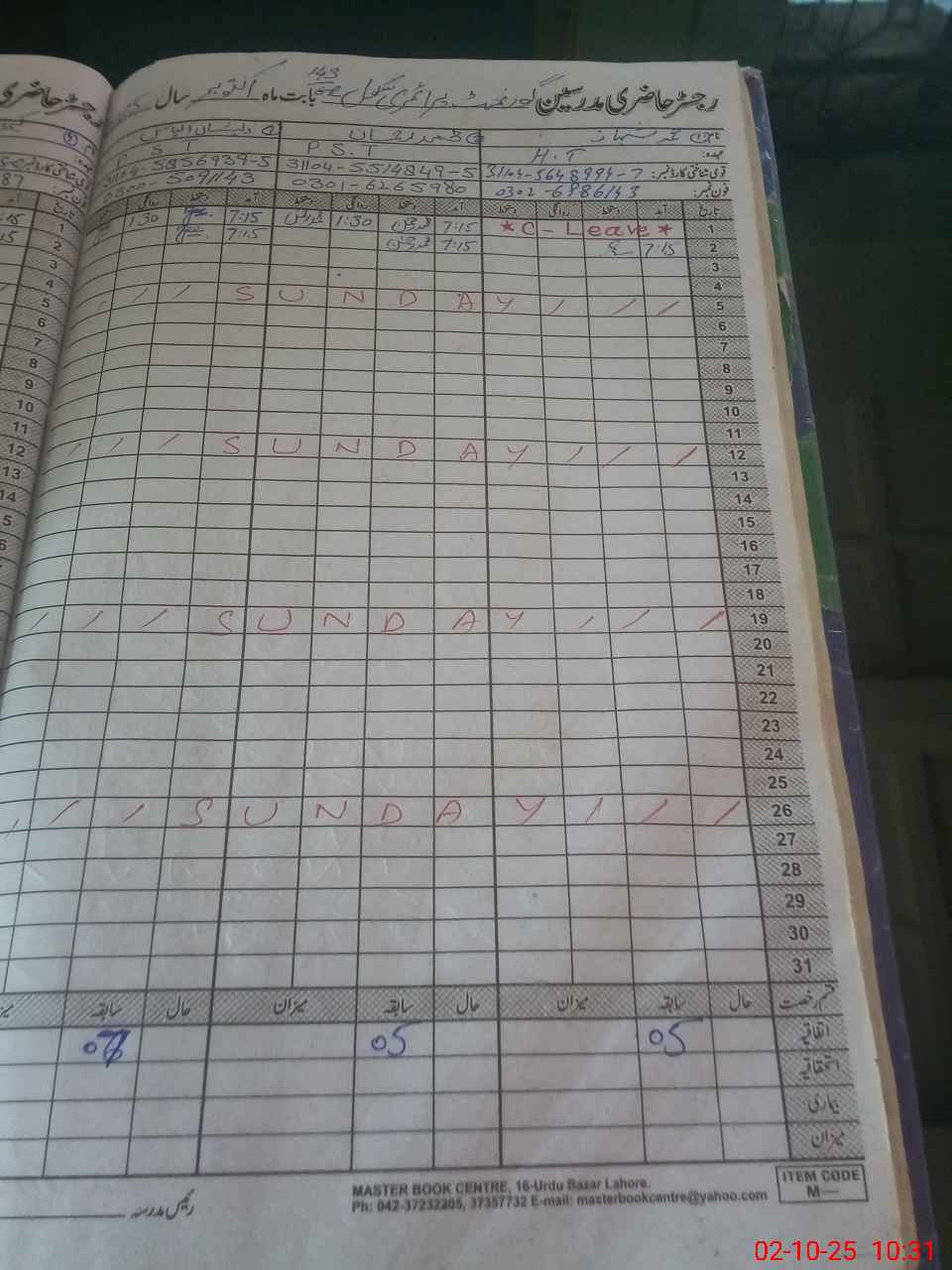 | CNIC | Full Name | Designation | R/C | Absence During Last Calender Month |