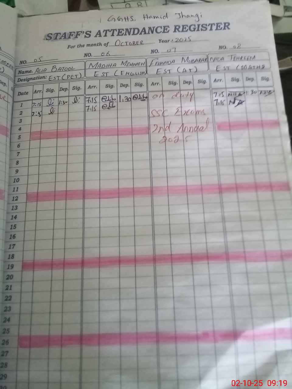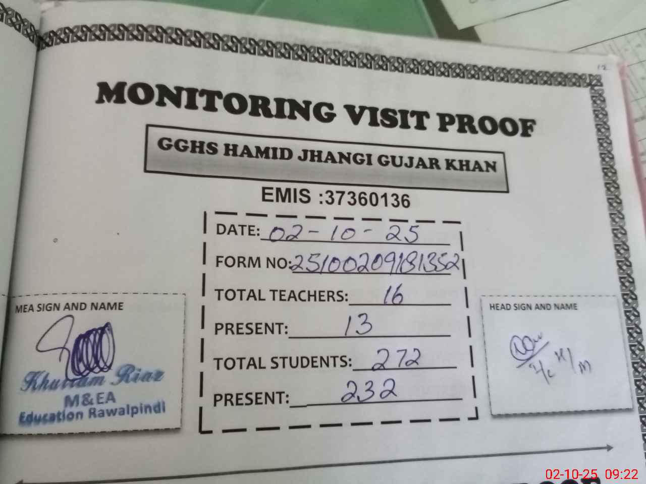 | EMIS Code: 37360136 | Name of School: GGHS HAMID JHANGI | |||