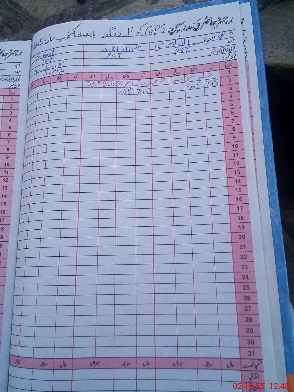 | Name: MU**** SA**** AB**** Designation: (School Headmaster's/Headmistress's) PST Phone/Cell Number: 03**** |
