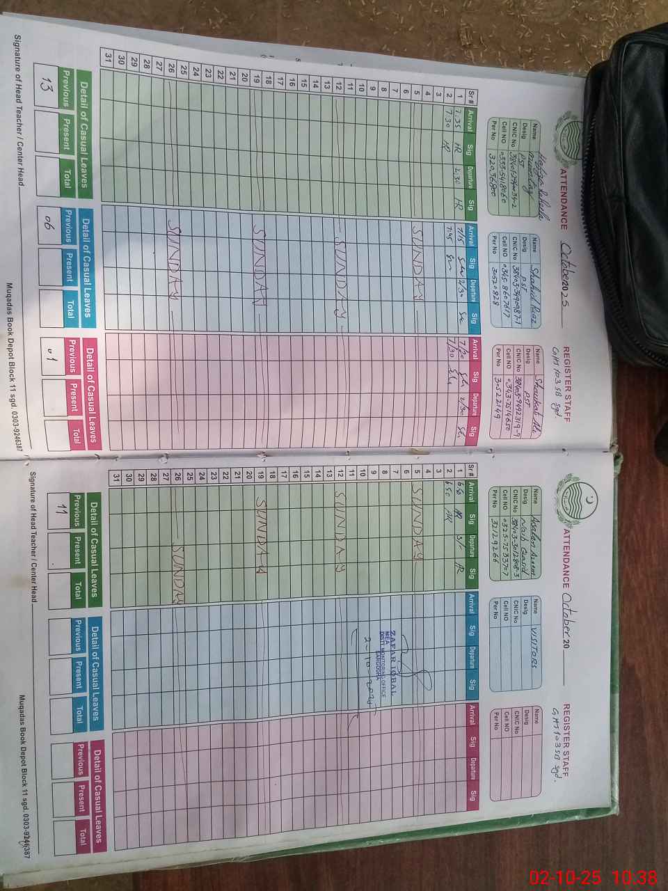| CNIC | Full Name | Designation | R/C | Absence during last cal. month |