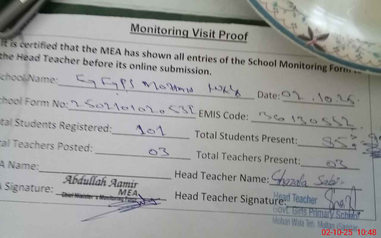 | EMIS Code: 36130552 | Name of School: GGPS MOHAN WALA MULTAN | |||