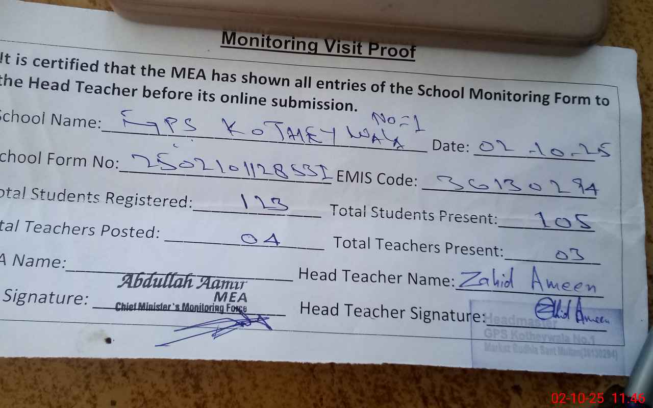 | EMIS Code: 36130294 | Name of School: GPS KOTHEY WALA NO.1 MOZA KOTHI WALA P/O SAME | |||