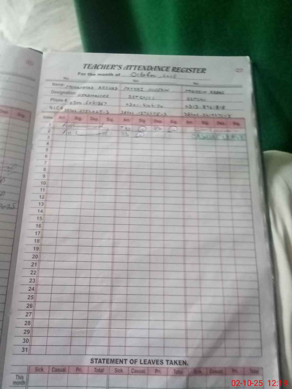 | Name: MU**** AR**** Designation: (School Headmaster's/Headmistress's) HEADMASTER Phone/Cell Number: 03**** |