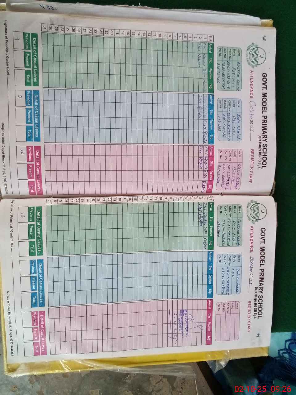 | CNIC | Full Name | Designation | R/C | Absence During Last Calender Month |