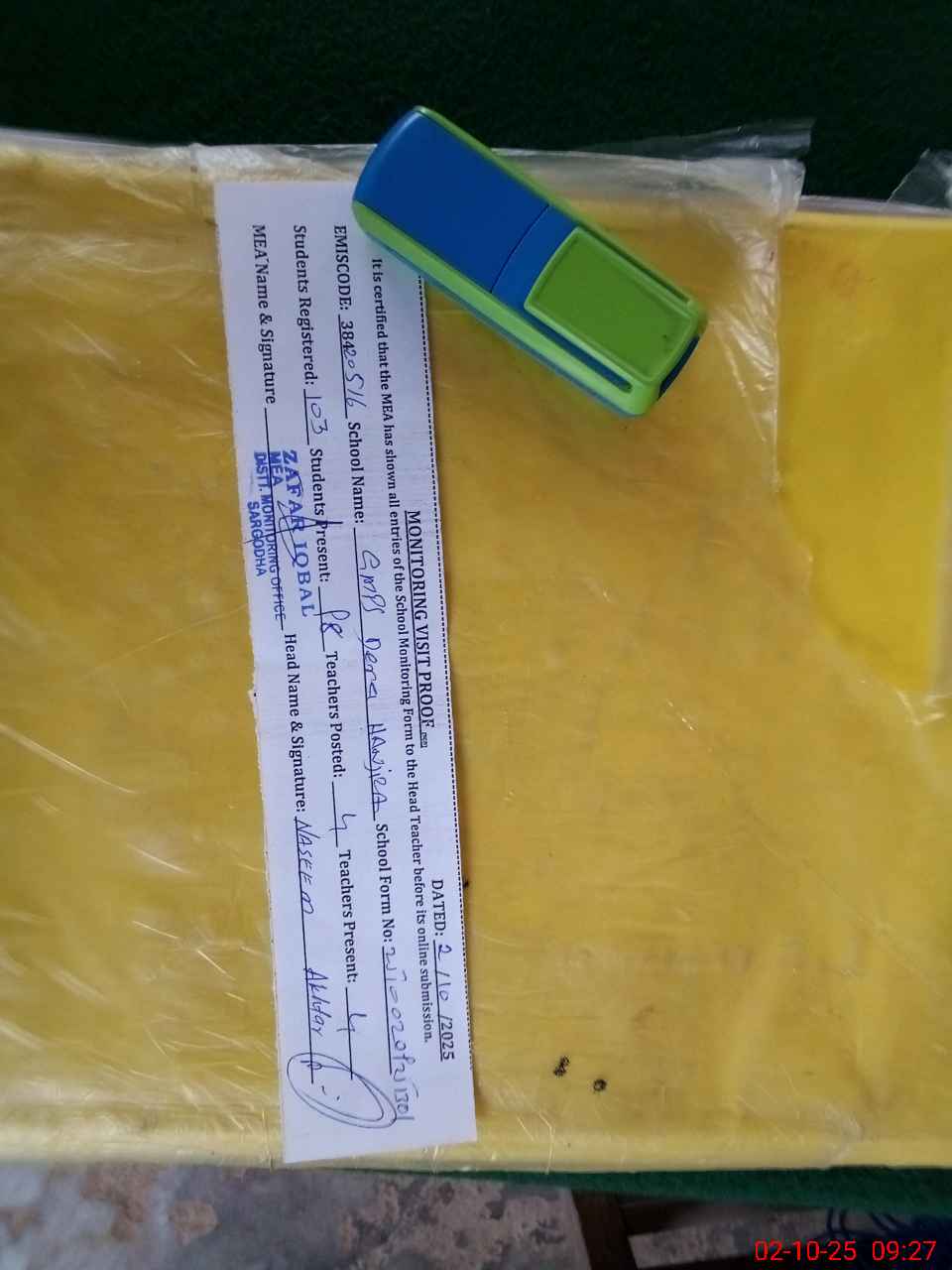| Attendance Register | Head Teacher | MEA with School | Visit Proof |