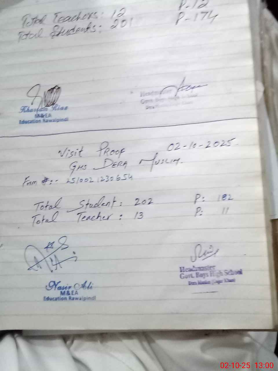 | Attendance Register | Head Teacher | MEA with School | Visit Proof |