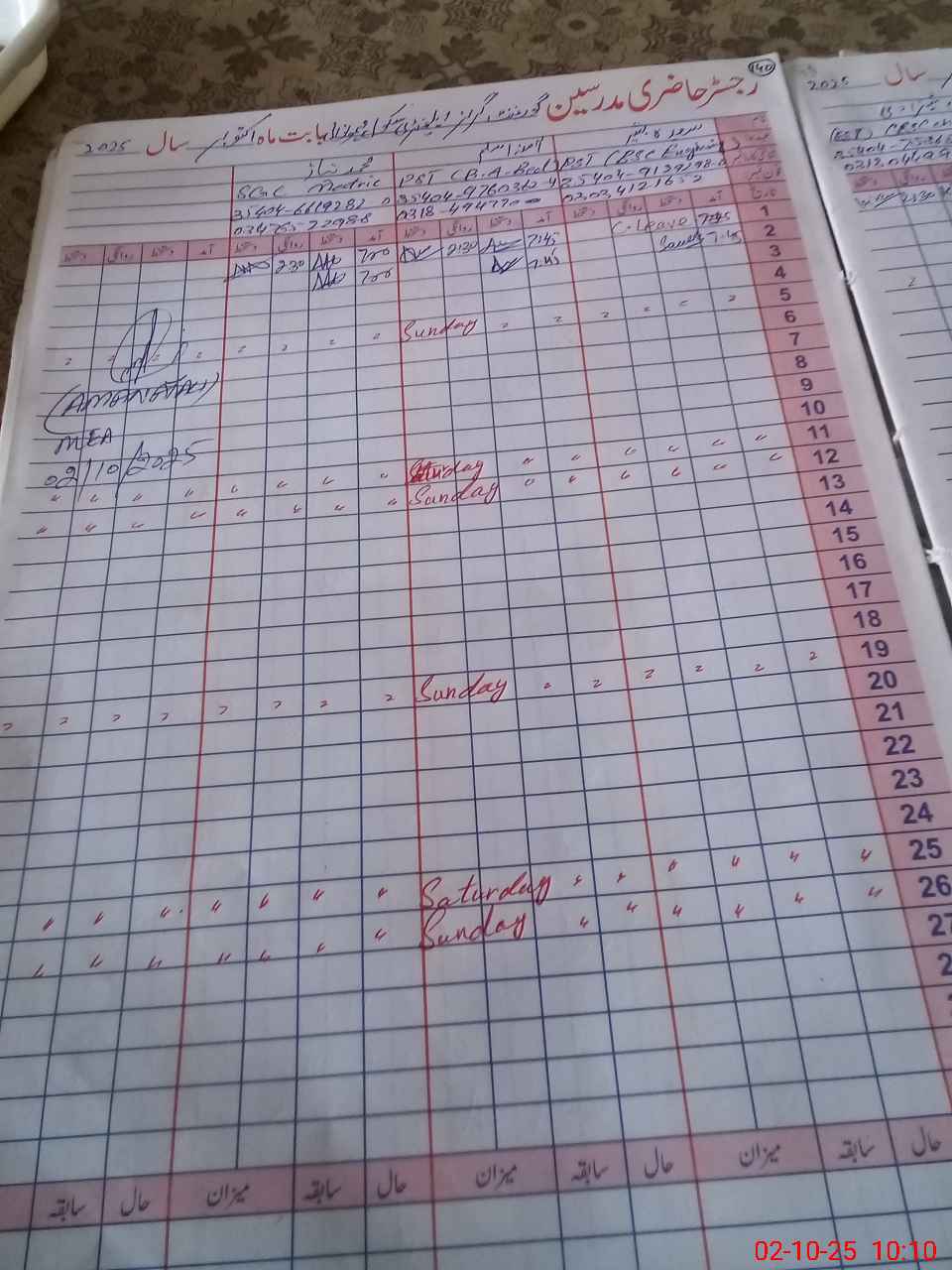 | Monitoring Date: 02-10-2025 | Start Time: 02-10-2025 10:09 AM | End Time: 02-10-2025 10:35 AM | Name of MEA: Am**** Al**** | |
