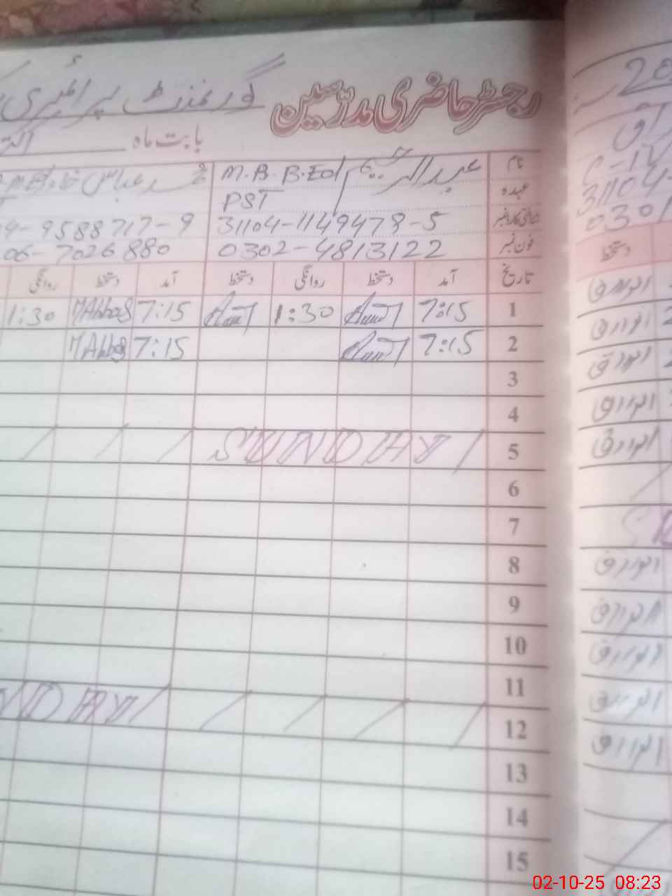 | CNIC | Full Name | Designation | R/C | Absence During Last Calender Month |