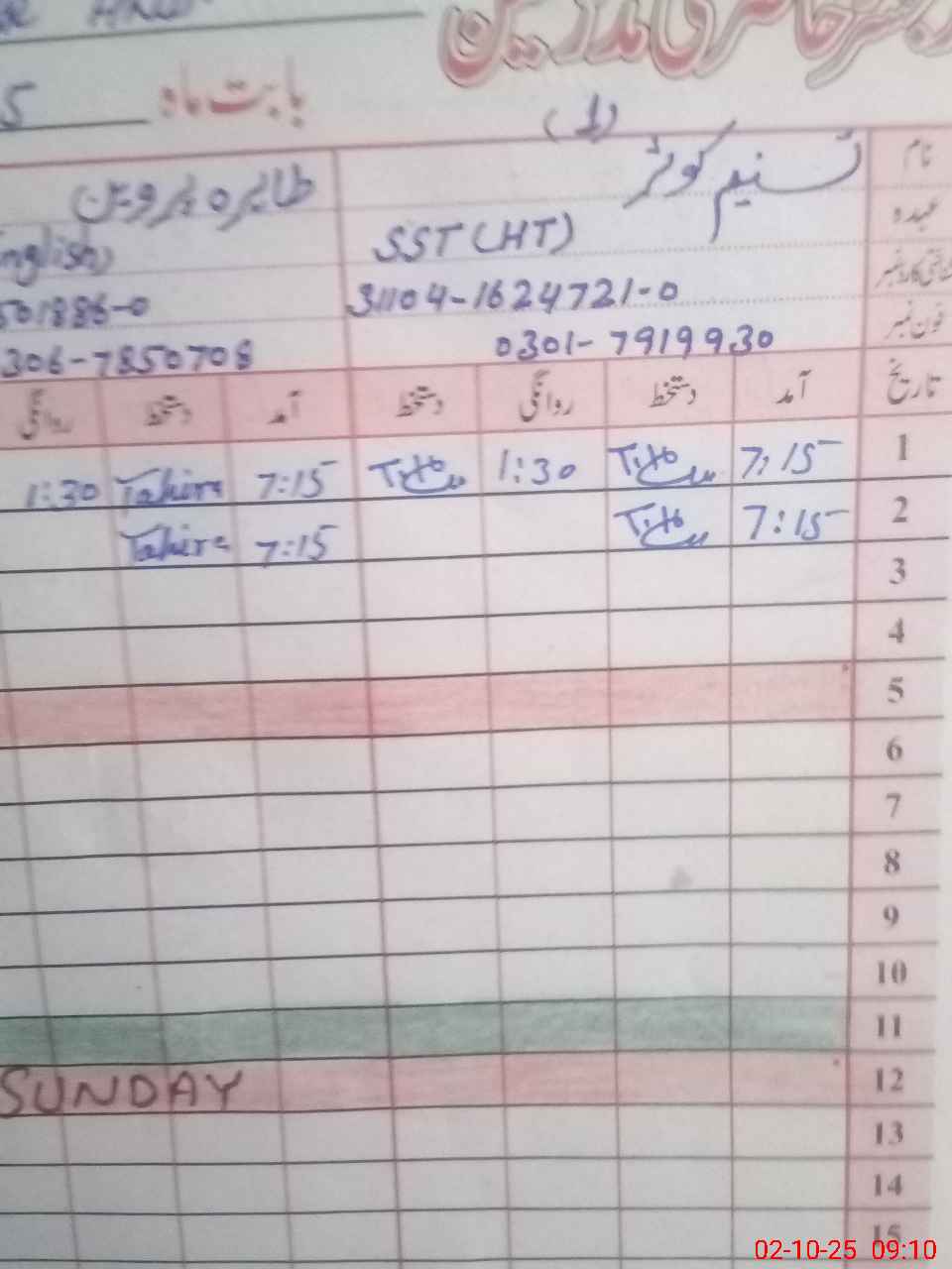| Name: TA**** KO**** Designation: (School Headmaster's/Headmistress's) S.S T (GEN) Phone/Cell Number: 03**** |