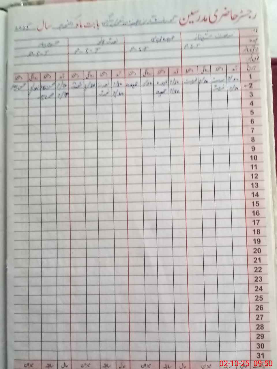 | CNIC | Full Name | Designation | R/C | Absence During Last Calender Month |