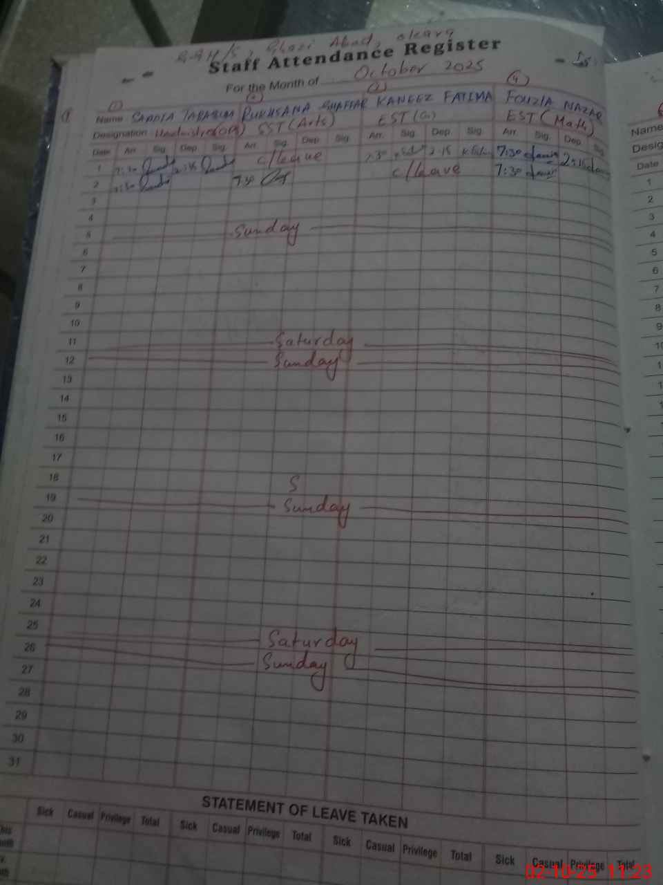 | Leave | Duty | Absent | Maternity | Medical | Ex- Pak |