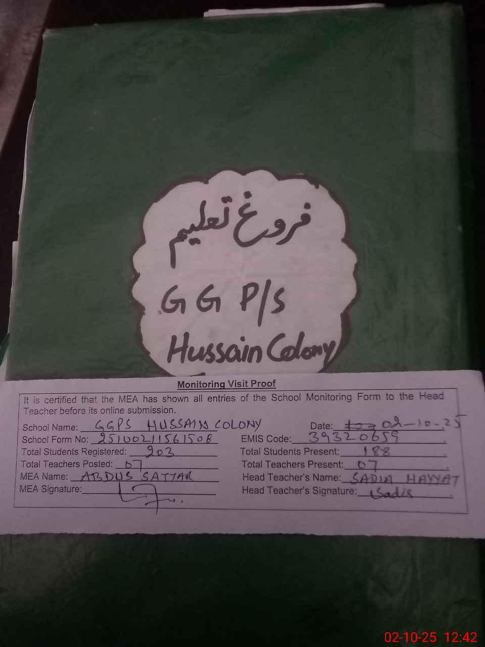 | EMIS Code: 39320659 | Name of School: GGPS HUSSAIN COLONY | |||