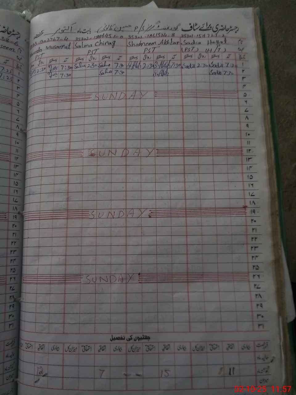 | CNIC | Full Name | Designation | R/C | Absence During Last Calender Month |
