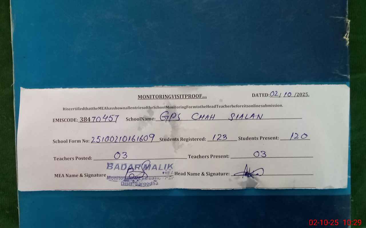 | EMIS Code: 38470457 | Name of School: GPS CHAH SIALAN | |||