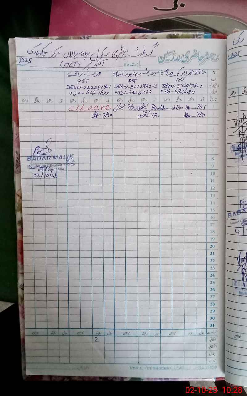 | District: SARGODHA | Tehsil: BHERA | Markaz: CHAK MUBARAK - MALE | Level: Primary | |