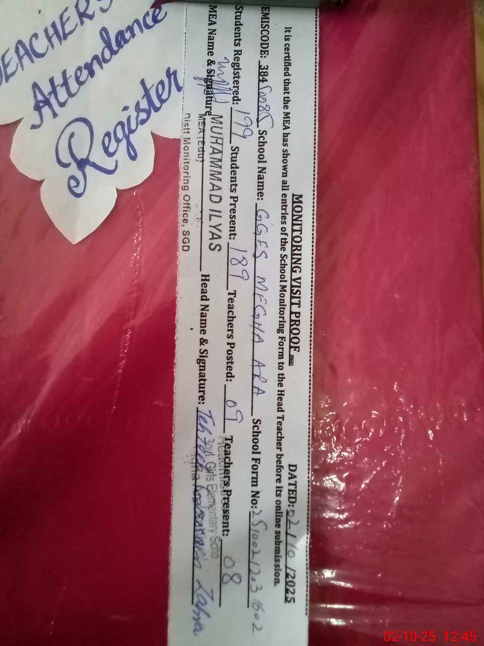 | EMIS Code: 38450085 | Name of School: GGES MEGHA ARA | |||