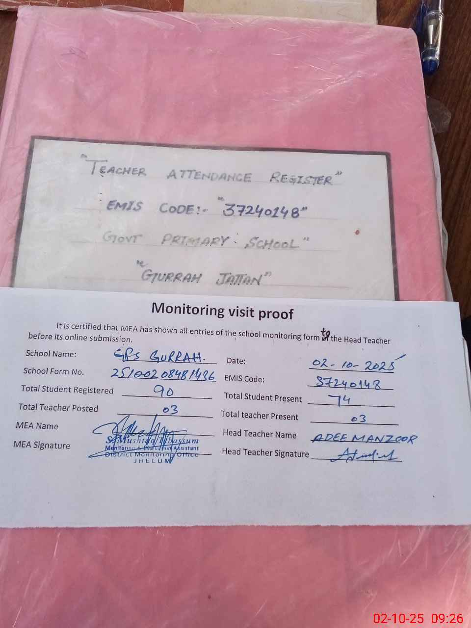 | EMIS Code: 37240148 | Name of School: GPS GURRAH | |||