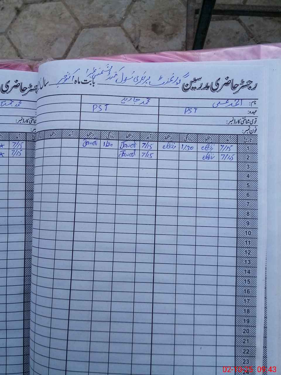 | Name: AH**** AL**** Designation: (School Headmaster's/Headmistress's) PST Phone/Cell Number: 03**** |