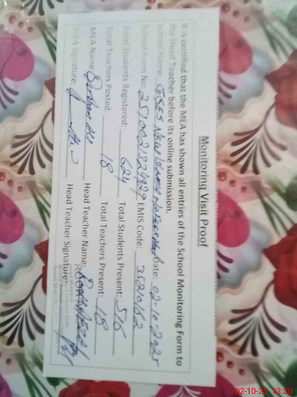 | EMIS Code: 35210162 | Name of School: GGES NEW ISLAMIA NAFEER ABAD | |||