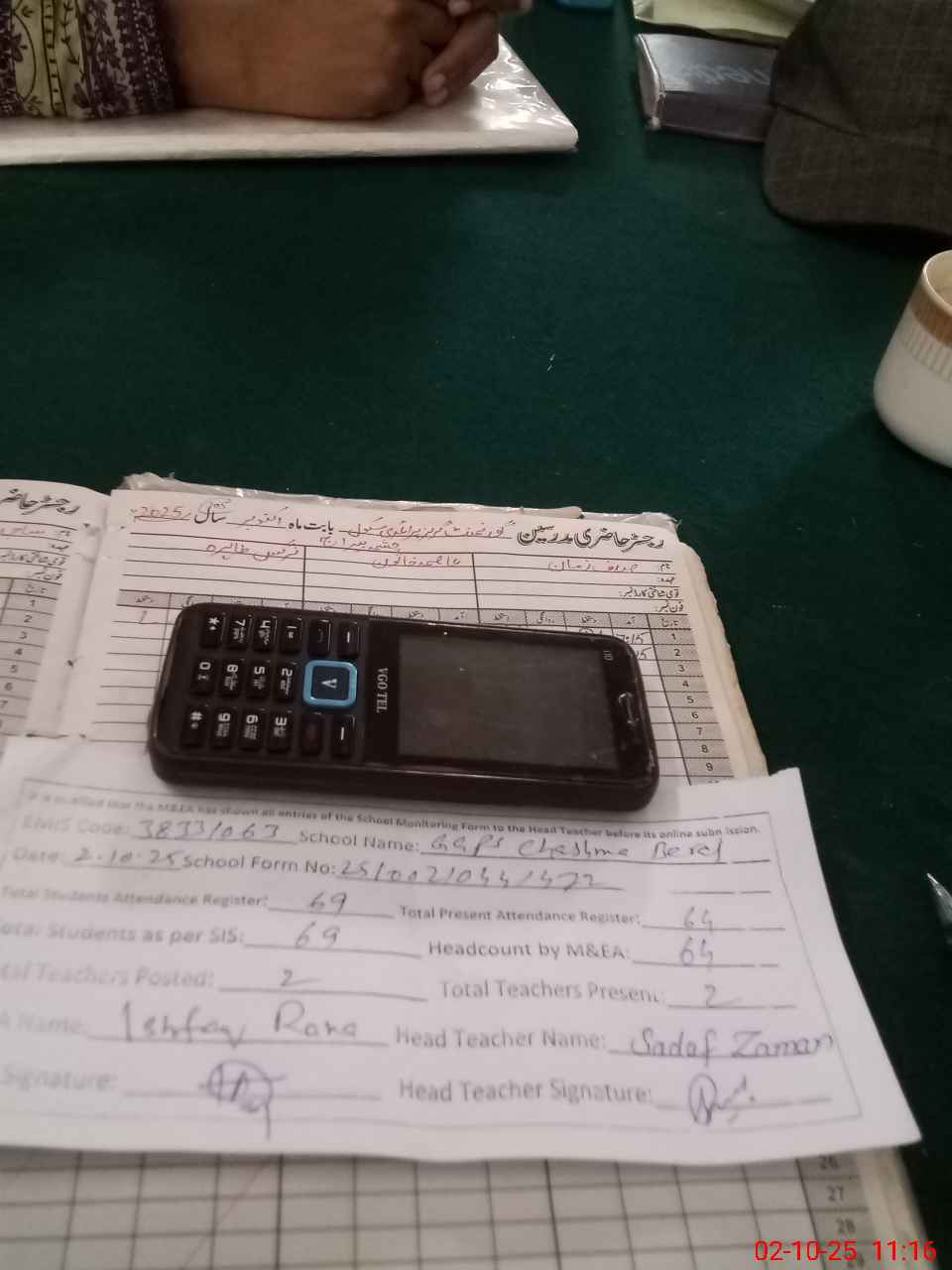 | EMIS Code: 38331063 | Name of School: GGPS CHASHMA BERAJ | |||