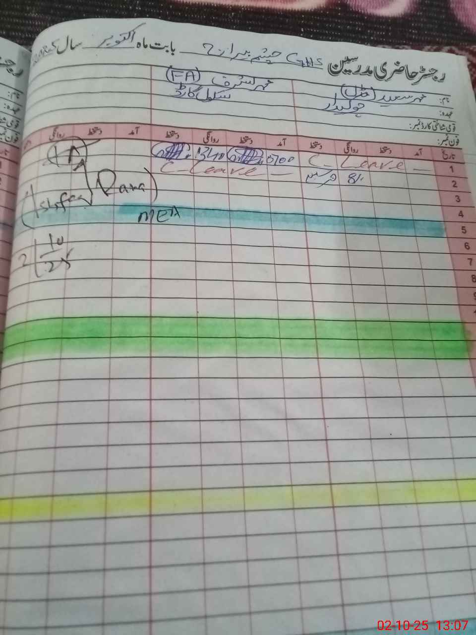 | CNIC | Full Name | Designation | R/C | Absence During Last Calender Month |