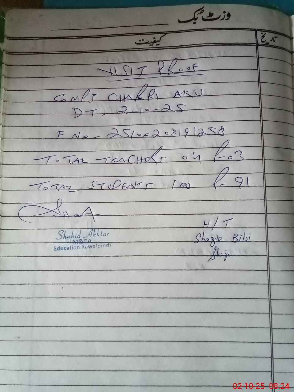 | Name: Sh**** Bi**** Designation: (School Headmaster's/Headmistress's) PST Phone/Cell Number: 03**** |