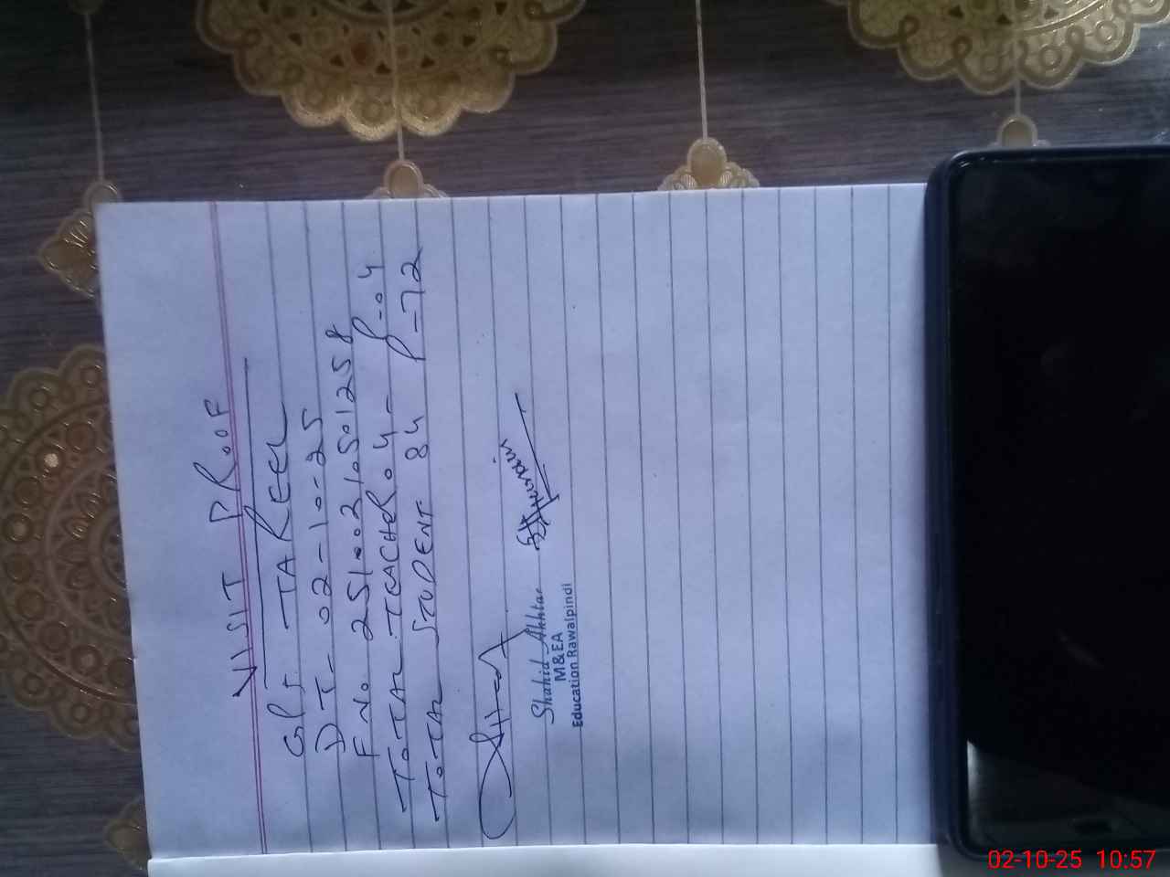 | Name: Az**** Hu**** Designation: (School Headmaster's/Headmistress's) PST Phone/Cell Number: 03**** |