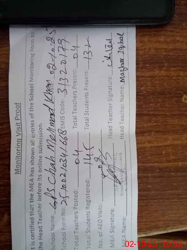 | EMIS Code: 31320179 | Name of School: GPS CHAH MEHMOOD KHAN | |||